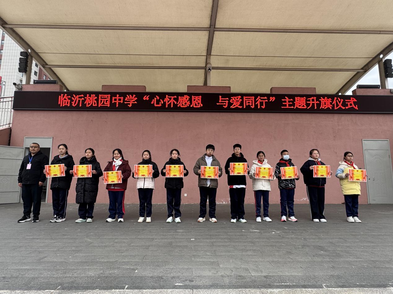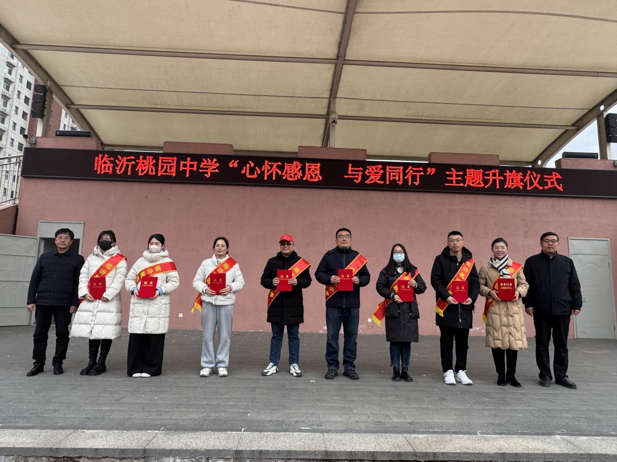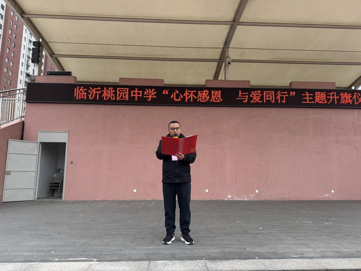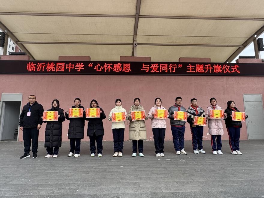 12月22日,临沂桃园中学全体师生齐聚操场,隆重举行“心怀感恩 与爱同行”主题升旗仪式。