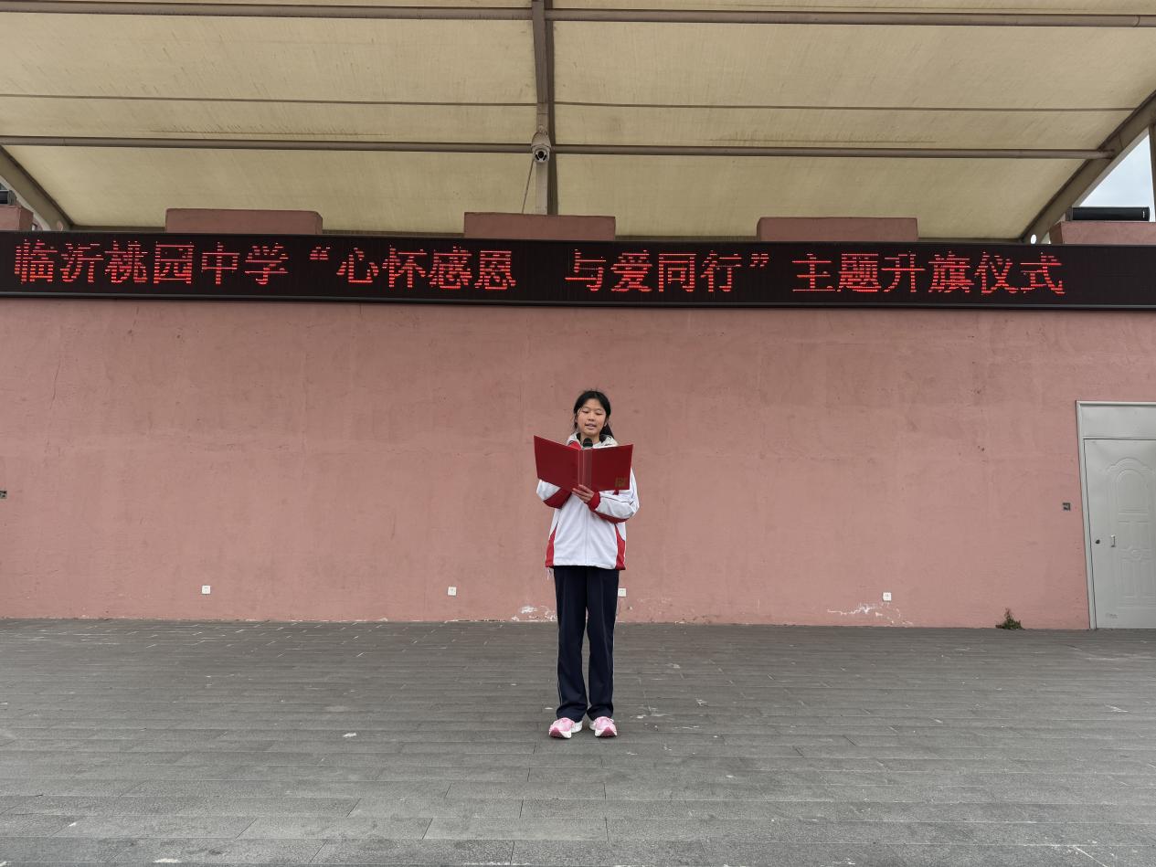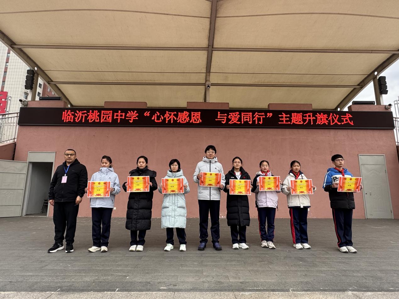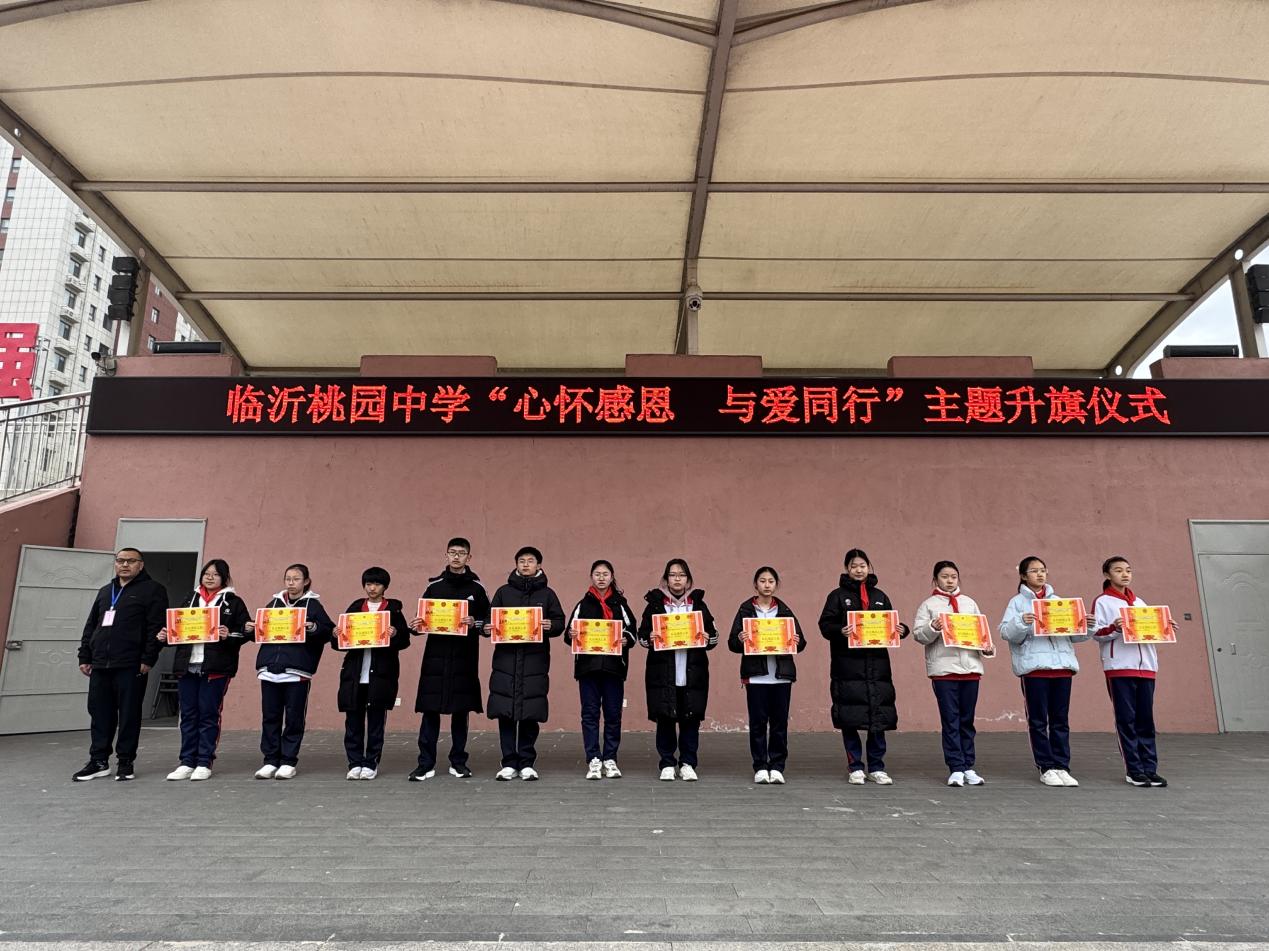 12月22日,临沂桃园中学全体师生齐聚操场,隆重举行“心怀感恩 与爱同行”主题升旗仪式。