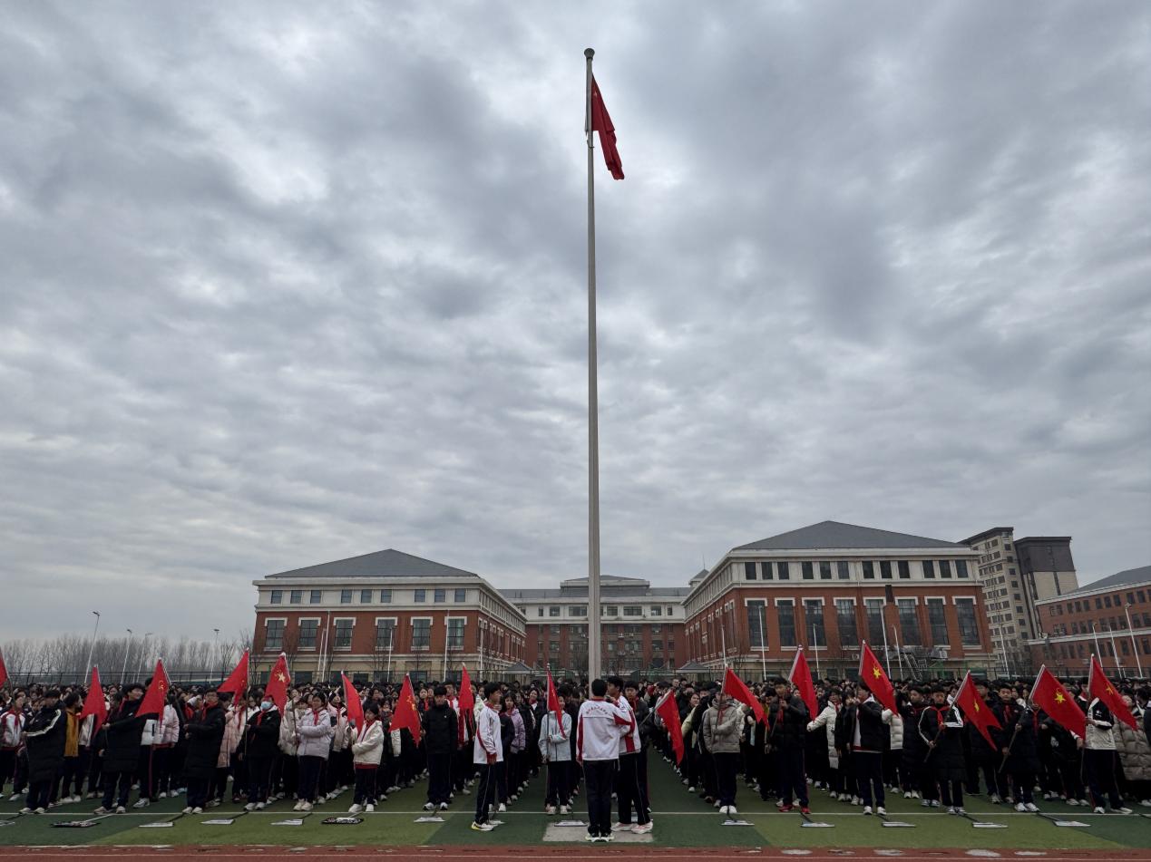 升旗仪式在冬日的晨光中拉开序幕。伴随着雄壮的《义勇军进行曲》,五星红旗冉冉升起,全体师生肃立行注目礼,少先队员行队礼,目光中饱含着对强大国家的自信和对父母师长无限的感恩。